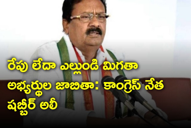 Shabbir Ali: రేపు లేదా ఎల్లుండి మిగతా అభ్యర్థుల జాబితా: కాంగ్రెస్ నేత షబ్బీర్ అలీ