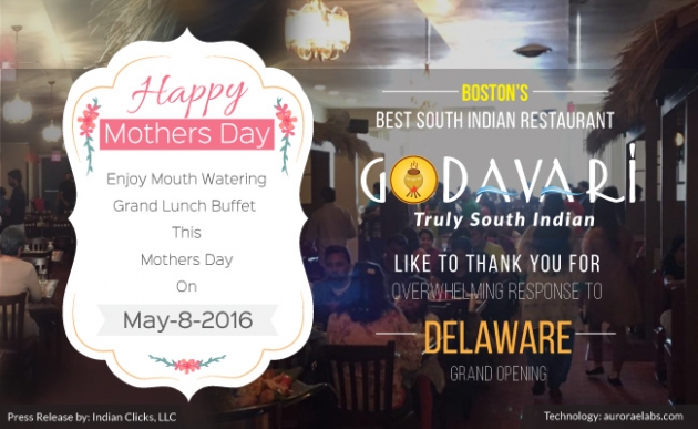 Delaware, USA, April 29th, 2016 (Press Note): The fastest growing South Indian restaurant in the world - Godavari, the authentic South Indian Cuisine was opened on April 16, 2016 to the public on a grand scale in the city of Wilmington in Delaware province.