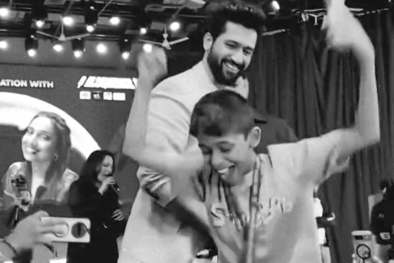 You can see the little boy jumping with joy, flaunting his big wide smile upon clicking a selfie with the actor. Further in the video, Vicky is seen turning back to look at the child, as he notices the boy’s unfiltered excitement.