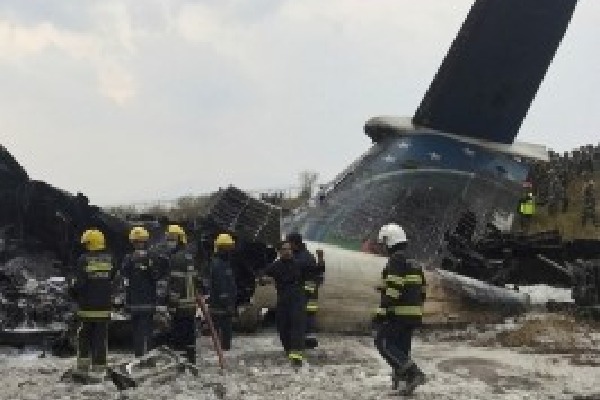 Video footage showed first responders rushing onto the runway as scattered wreckage from the plane was engulfed in fire.