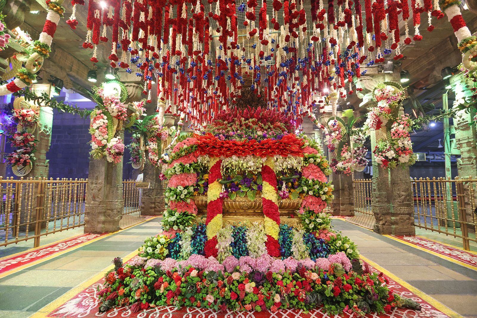 To mark the occasion, the TTD garden department has adorned the temple complex with breathtaking decorations, utilizing 50 tonnes of traditional flowers, 10 tonnes of fruits, and four lakh cut flowers. The entire hill town is currently illuminated with vibrant electrical displays, enhancing the festive atmosphere.
