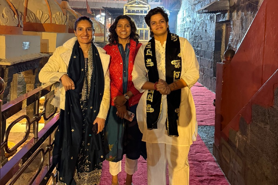 Ujjain, Jan 1 : Beginning the new year on a spiritual note after their historic World Cup triumph, members of the Indian Women's cricket team sought the blessings of Lord Shiva at the Mahakaleshwar Jyotirlinga here on Thursday. The players also attended the early morning bhasm arti at the temple.