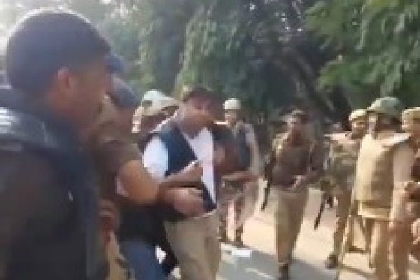 The video footage revealed police personnel moving in to disperse the crowd, detaining several NSUI activists as they raised slogans against Prime Minister Narendra Modi and the ruling BJP-led Union government.