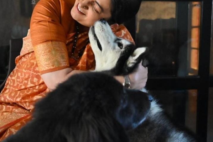 Amid ongoing dog feeder controversy, Smriti Irani shares pic of receiving ‘unconditional love’ from her pets