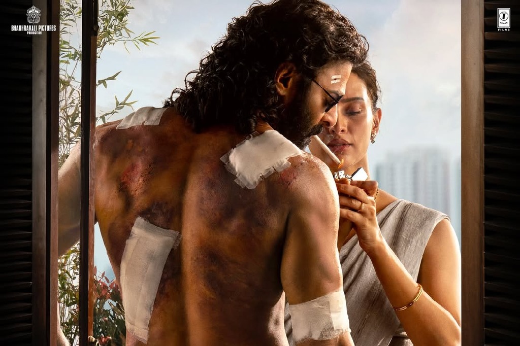 The gripping poster shows a wounded Prabhas standing by the window, while Triptii lights his cigarette.