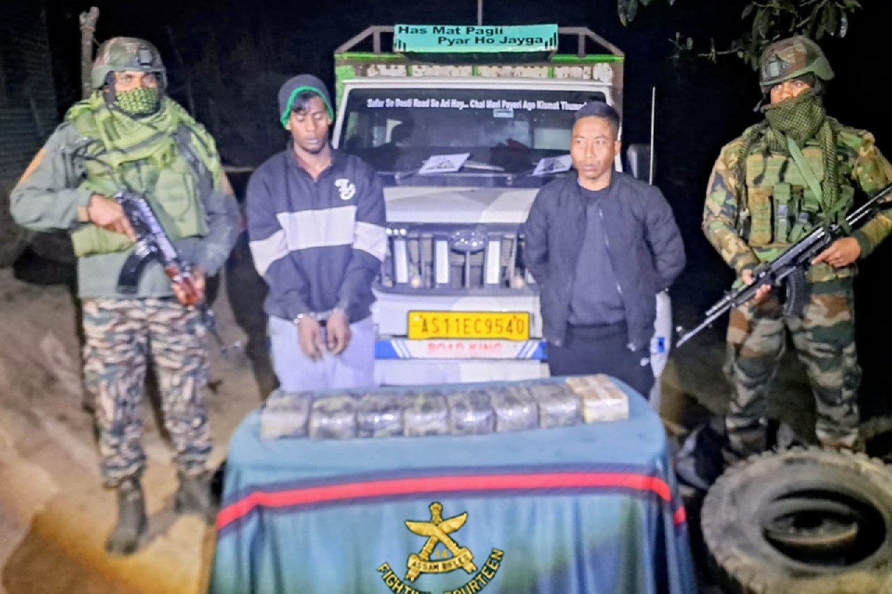 A defence spokesman said that, acting on credible intelligence inputs related to narcotics trafficking near the India-Myanmar border, Assam Rifles conducted an operation at Ngur areas in the bordering Champhai district on Sunday. During the operation, unusual movement was detected near the suspected location involving a Bolero pickup vehicle.