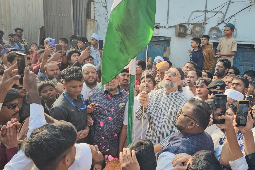 Hyderabad, Jan 26 : AIMIM President Asaduddin Owaisi unfurled the national flag at various places in Hyderabad on the 77th Republic Day on Monday.