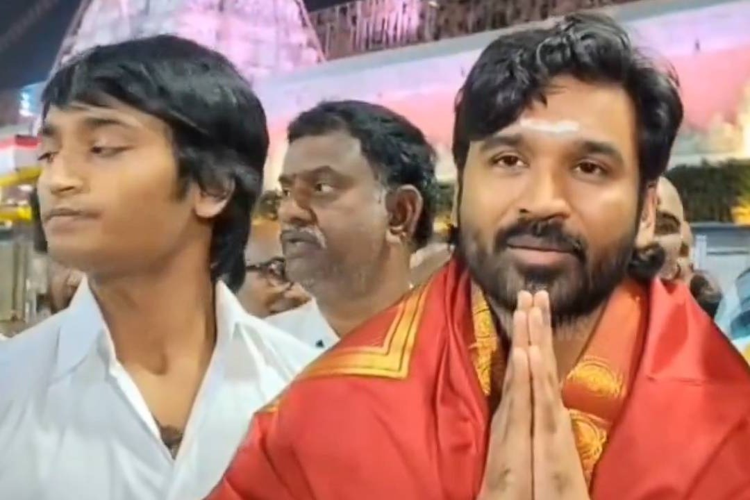 Chennai, Jan 28 : Well known Tamil actor and producer Dhanush, along with his sons Linga and Yatra, offered prayers at the world famous Sri Venkateswara Swamy Temple at Tirupati on Wednesday.