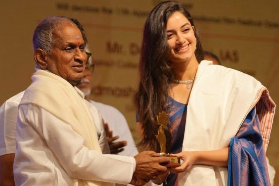 Taking to her Instagram page, the actress, who took Ilaiyaraaja's blessing by falling at his feet while receiving the honour, wrote, "Dear Ilaiyaraaja sir, It is truly an honour beyond words to be felicitated by you at the Ajanta Ellora International Film Festival (@aiff_official_ ) held in my very own hometown, Chhatrapati Sambhajinagar. I feel deeply grateful to begin my journey with your blessings."