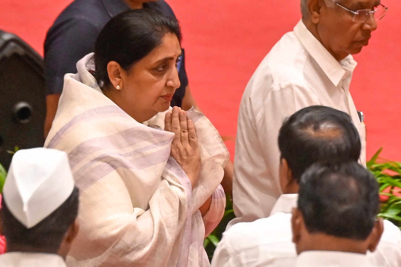 Before her swearing in, Sunetra Pawar was unanimously elected as the NCP Legislature Party leader. Her name was proposed by party veteran Chhagan Bhujbal and seconded by Dilip Walse Patil and a host of other legislators.