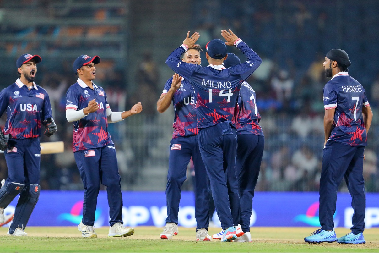 Van Schalkwyk was the most successful bowler for the USA as he finished with figures of 2/30, while Sourabh Netravalkar, Ali Khan and Shubham Ranjane got one wicket each.