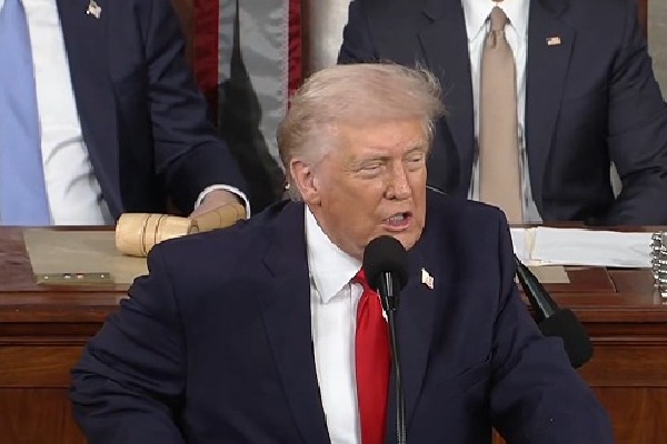 Washington, Feb 25 : President Donald Trump strode into the House chamber to chants of “USA, USA, USA”, and delivered a State of the Union address built as much for the room as for the cameras -- a rolling blend of victory lap, grievance and theatre that cast his second-term as a national rescue mission and his opponents as the one remaining obstacle to a promised “golden age of America”.