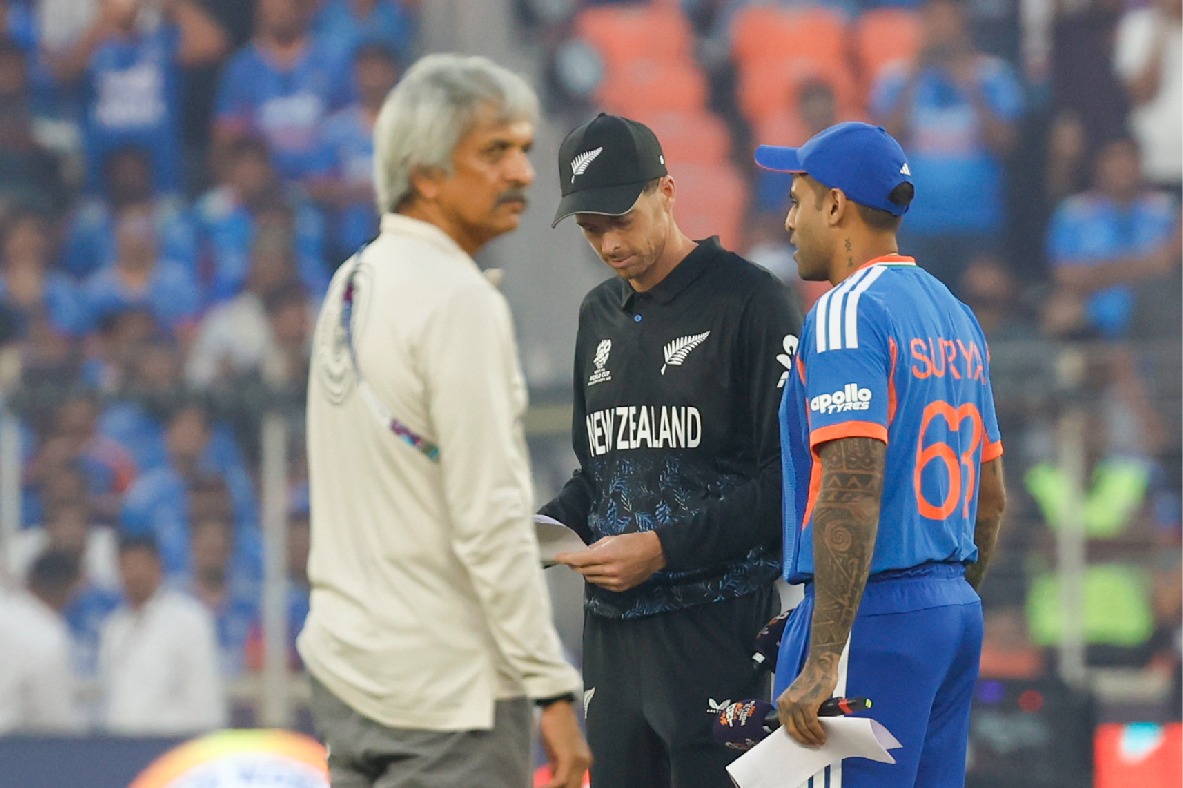 Ahmedabad, March 8 : New Zealand have brought in pacer Jacob Duffy in place of off-spin bowling all-rounder Cole McConchie as captain Mitchell Santner won the toss and elected to bowl first against unchanged India in the 2026 Men’s T20 World Cup final at the Narendra Modi Stadium on Sunday.
