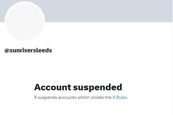 Just hours after the team signed Abrar for 190,000 pounds (Rs 2.3 crore), Sunrisers Leeds’ official X (formerly Twitter) account was suspended. While the platform hasn’t provided a specific reason, users attempting to access the account are met with a pop-up message stating, “Account suspended. X suspends accounts that violate the X rules."