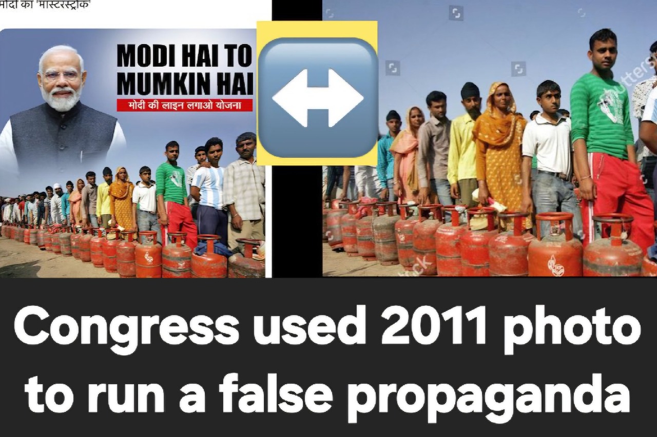 He shared an image used on a Congress social media post that used the old picture of people waiting in queues with LPG cylinders, juxtaposing it with the 2011 digital article in which the photo of the "long LPG booking queue" was used.