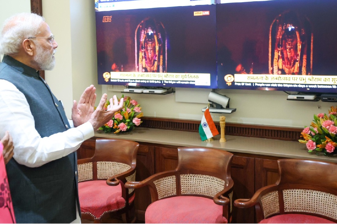PM Modi watches Surya Tilak of Ram Lalla, prays for nation’s well-being