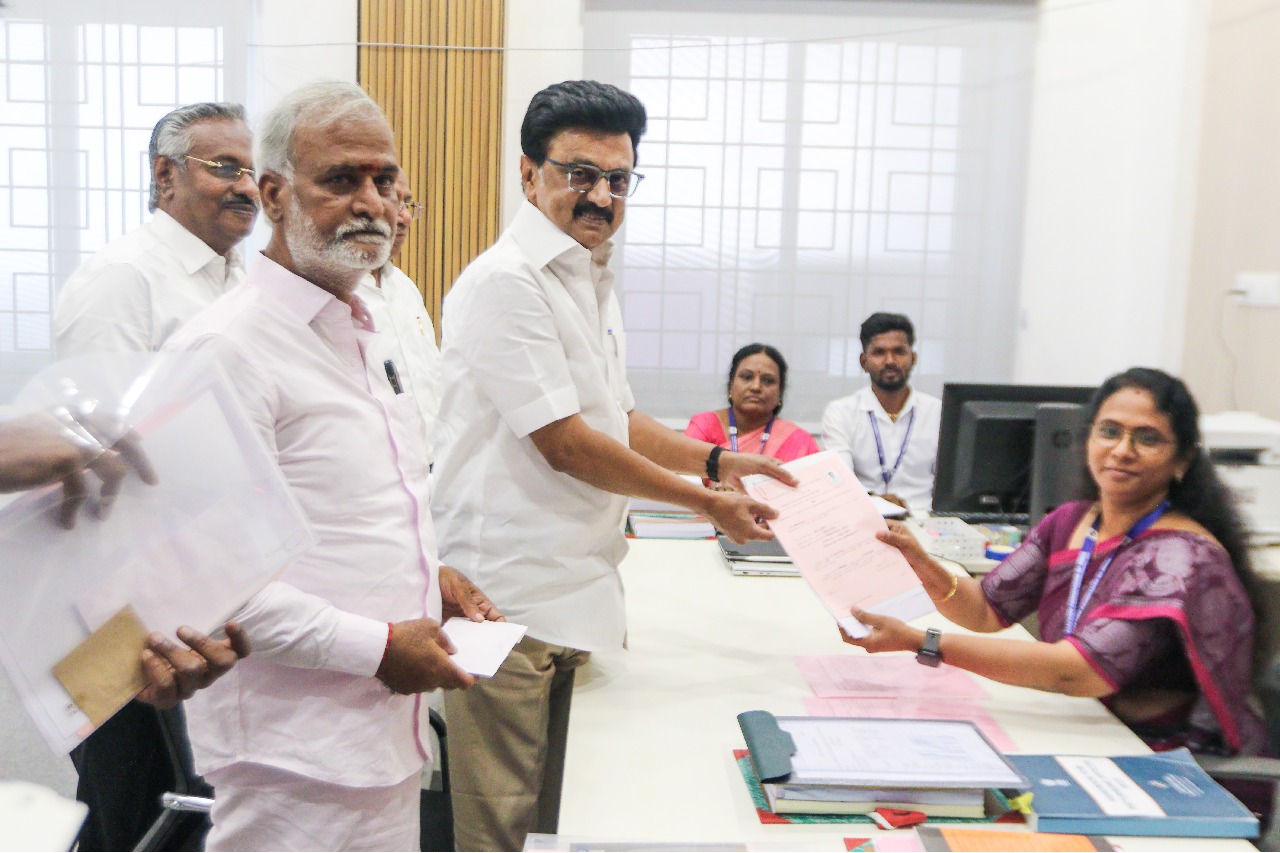 Against this backdrop, Stalin arrived at the designated election office located at Paper Mills Road under the Kolathur Assembly segment and submitted his nomination papers to Returning Officer S. Shanthi in the presence of senior leaders, including Minister Sekhar Babu.