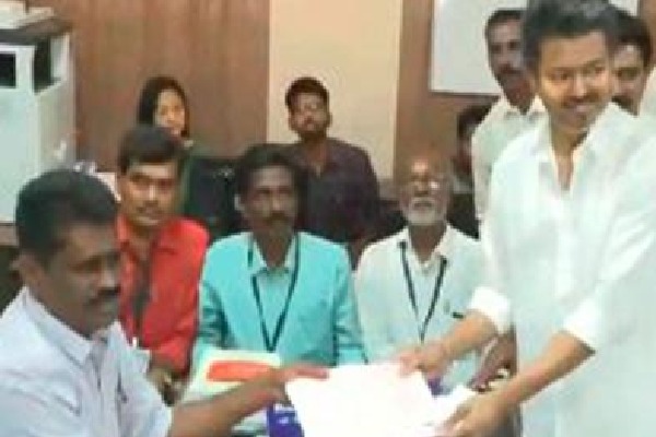 Later, Vijay formally submitted his nomination papers to the Returning Officer, Muthu Murugesa Pandian, at the Tiruchy East constituency office.