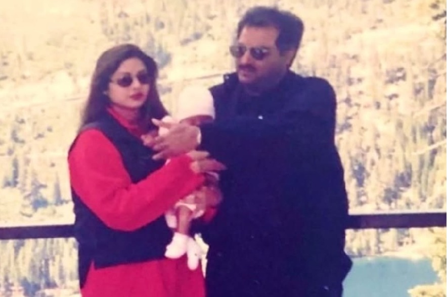 Mumbai April 6 : Film producer Boney Kapoor took a nostalgic trip down memory lane on Sunday evening as he shared a throwback picture that featured his late superstar wife Sridevi and their daughter Jahnvi Kapoor, who seems to be four months old.