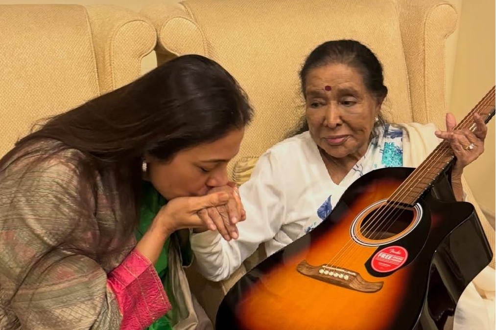 In another picture, she is seen hugging the legendary singer and in the other picture, Asha Bhosle is seen holding the guitar that she gifted to the talented actress.