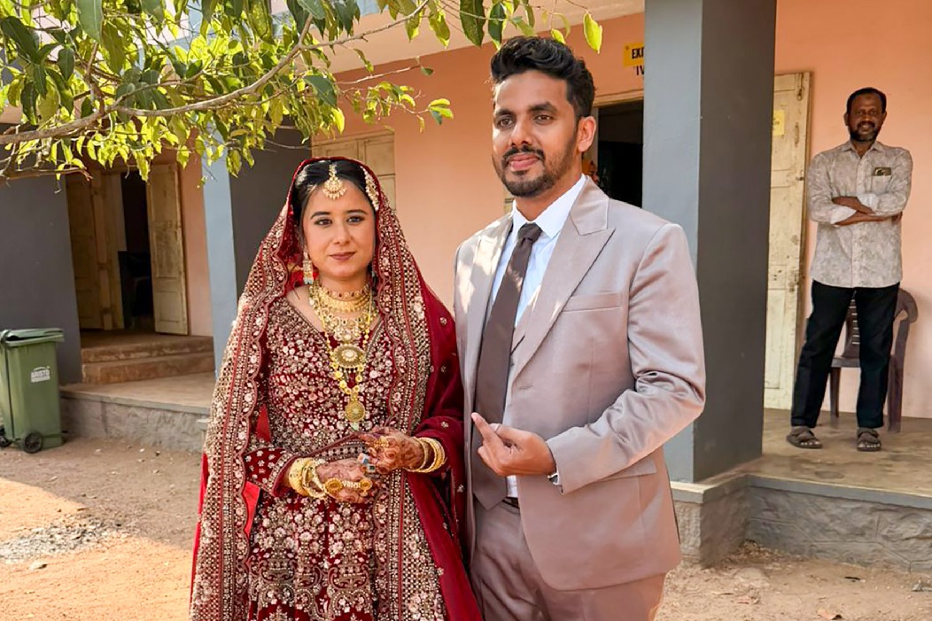 Among other places, a newly married couple came to vote at the HMT School polling station at Kalamasseri in Kerala's Ernakulam.