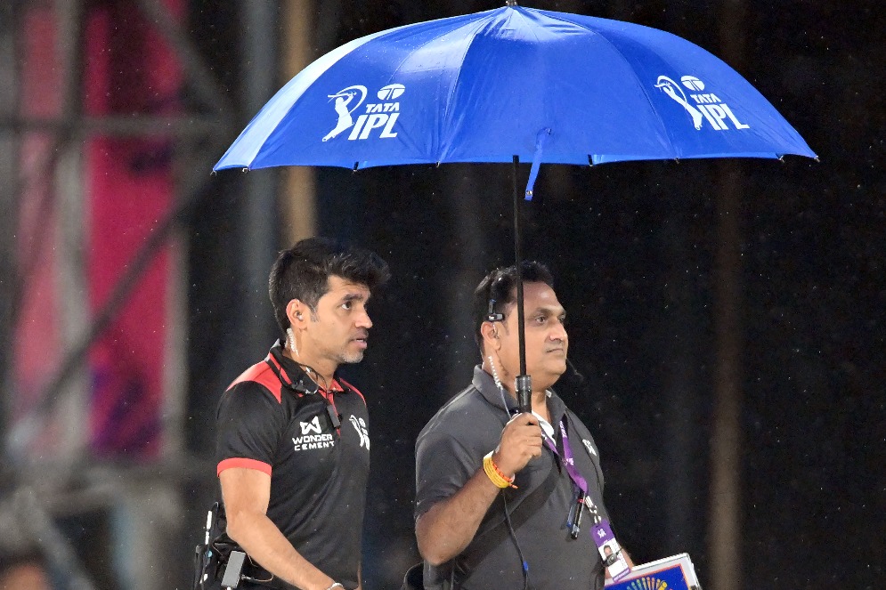 The weather forecast was better before the start of the game, but the rain, which started with a slight drizzle, intensified as on-field umpires had to call for the covers. Initially, the covers were only placed around the square boundaries, which were later expanded to cover the whole ground.