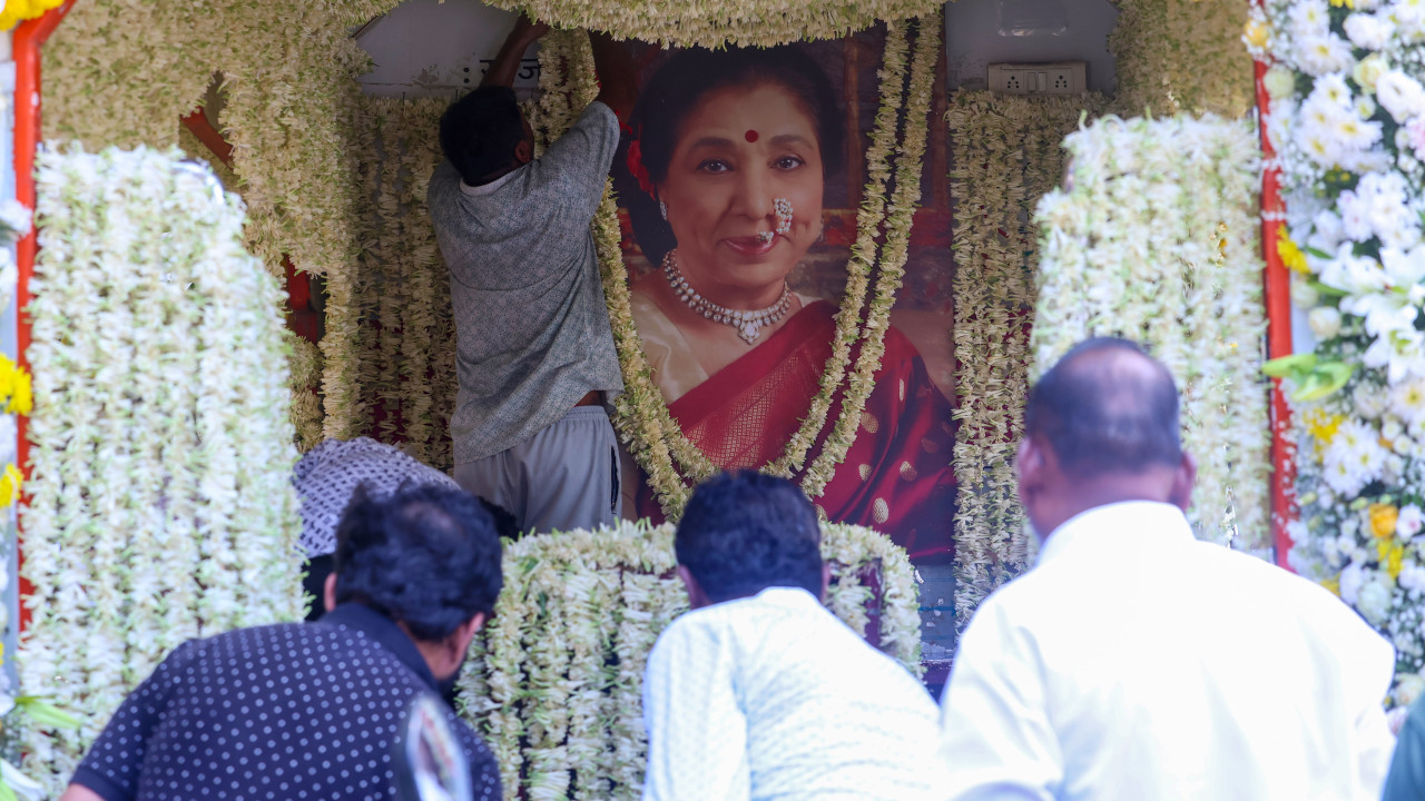 Mumbai, April 13 : Several bigwigs of the entertainment industry turned up to bid farewell to the late singing legend Asha Bhosle on Monday.