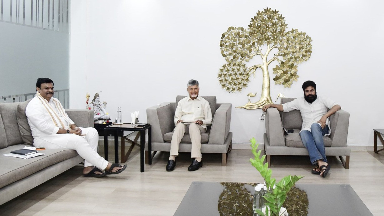 Chief Minister and Telugu Desam Party (TDP) national president N. Chandrababu Naidu, Deputy Chief Minister and Jana Sena president Pawan Kalyan, state BJP president PVN Madhav, and state TDP president Palla Srinivasa Rao attended the meeting held on Wednesday evening at the Chief Minister’s official residence.