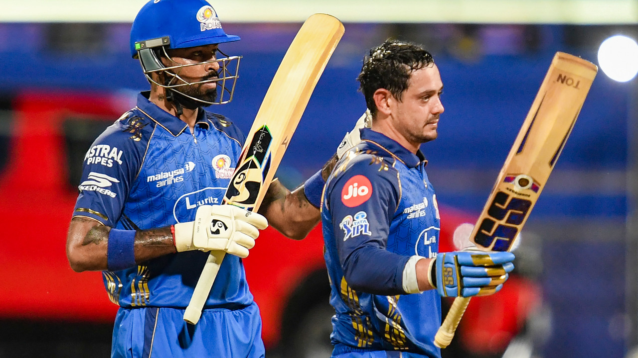 With Rohit Sharma missing the match after failing to fully recover from a hamstring injury he suffered in the previous match against Royal Challengers Bengaluru, the Mumbai Indians went in with a new opening pair as Quinton de Kock partnered his South African compatriot, Rickelton.