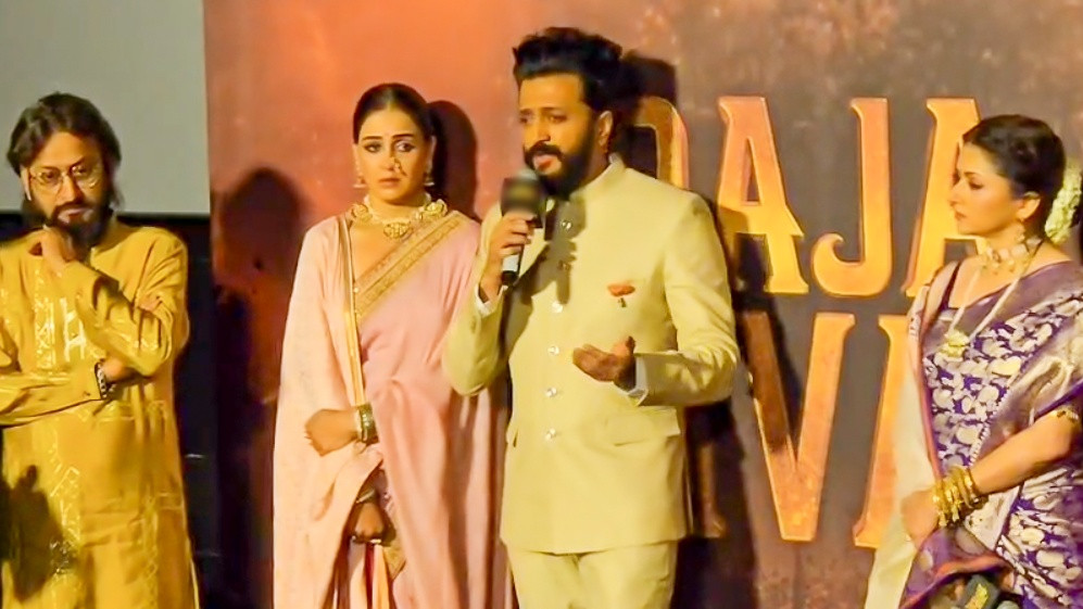 As Riteish spoke with the media, his wife was visibly moved, and even turned around to hide her tears from the media. Riteish spoke about his devotion to the Maratha warrior-king Chhatrapati Shivaji Maharaj, and how much it means to him to make a film based on him.