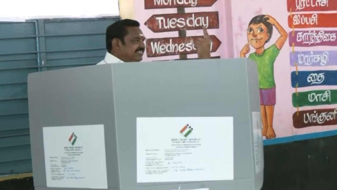 AIADMK General Secretary Edappadi K. Palaniswami cast his vote along with his family at a polling booth in Siluvampalayam Panchayat Union Primary School in Salem.