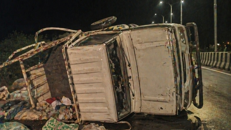 The incident occurred around 8.30 p.m. near a private petrol pump in the Chikaliya area when a pick-up truck, dangerously overcrowded with passengers, lost control and overturned.