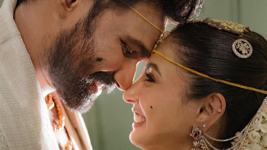 Actor Bellamkonda Sai Sreenivas weds Kavya in a traditional ceremony in Tirumala