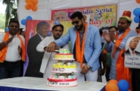 A little-known right wing outfit, Hindu Sena, on Tuesday celebrated Trump's birthday by cutting a 7 kg cake, followed by a brief musical performance.