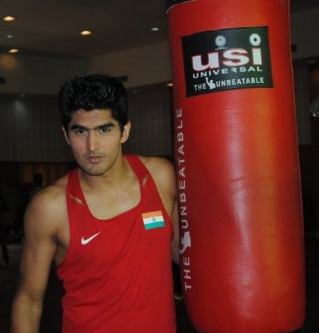 New Delhi, July 16: Star boxer Vijender Singh defeated Kerry Hope of Australia in a hard-fought bout to win the WBO Asia/Pacific Middleweight title at the Thyagraj Stadium here on Saturday evening.