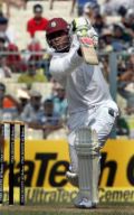 Antigua, July 24: The West Indies continued their battle in the first cricket Test against India as they reached 76/2 in their second innings during the rain-shortened morning session of the fourth day here on Sunday. Opening batsman Rajendra Chandrika (22 not out) and veteran Marlon Samuels (39 not out) forged an undefeated 55-run stand following the dismissal of Darren Bravo (10) early in the morning. The match was halted due to rain half an hour before the end of the first session, forcing an early lunch, as the West Indies, who were on Saturday bowled out for 243 in their first essay, were battling to avert an innings defeat -- still trailing by 247 runs. Resuming the day at 21/1, the West Indies received a big blow in the first over of the day when left-handed overnight batsman Bravo edged an away-moving delivery from pacer Umesh Yadav to wide third slip fielder Ajinky Rahane, who dived low to his left to pluck a brilliant catch. It was just the start the Virat Kohli-led visitors wanted and the wicket further boosted their confidence. However, the home batting duo of Chandrika and Samuels came out with strong resistance to deny India any more wickets at the Sir Vivian Richards stadium. While Chandrika was all about doggedness and determination as he played 84 deliveries for 22 not out, Samuels, 35, showed the way for the West Indies with attacking intent. Samuels took the attack to the opposition and hit nine fours among the 51 deliveries he faced so far. Indian pacer Ishant Sharma tested him early with rising deliveries but he fended them with determination -- twice spanking them through the covers for fours. Indian bowlers also made the fault of bowling much outside the off stump as Samuels and Chandrika found them comfortable. Samuels cotnied with an off-drive and a punch towards the covers of Mohammed Shami and latter punished off-spinner Ravichandran Ashwin for three fours in a single over, making best use of experience and feet movement. Brief scores: India: 566/8d; West Indies: 243 and 76/2 (Marlon Samuels 39 not out; Ishant Sharma 1/17).