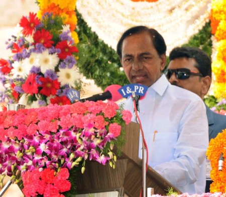 Hyderabad, Aug 15: Telangana is the number one state in the country in the welfare of the weaker sections as it is spending Rs 30,000 crore annually on various welfare schemes, Chief Minister K. Chandrasekhar Rao said on Monday. Speaking at the main official function to celebrate 70th Independence Day, he said the government was implementing 35 schemes for welfare of various sections He said in a short span of two years Telangana had attracted the national attention with its achievements in development and welfare sectors. KCR, as the Chief Minister is popularly known, said the government this year launched new schemes like extending Kalyana Lakshmi to the backward classes. This scheme for providing financial assistance to girls from poor families was so far confined to the Scheduled Castes(SCs) and the Scheduled Tribes (STs). The government also established 250 residential schools for SCs, STs and minorities from the new academic year. The Chief Minister said this laid the foundation stone for the programme to provide free education from KG to PG. KCR reiterated that minorities and STs would be provided reservation in proportion to their population in the state. He said steps would also be taken to improve the socio-economic and educational conditions of these sections as suggested by the two commissions which submitted their reports last week. He told the gathering that the process to create new districts is on, and the government will announce new ones on the occasion of Dussehra. He claimed that despite the hurdles being created by 'anti-development forces,' the government was moving ahead to achieve the goal of 'bangarua' (golden) Telangana. KCR said the government had launched new irrigation projects and speeded up the ongoing projects to bring one crore acre under irrigation. He also spoke about the initiative taken to sign an agreement with neighbouring Maharashtra to facilitate construction of projects across Godavari river. He said an action plan had been prepared to provide drip irrigation facility to 1.26 lakh acres this year. Under Mission Kakatiya, the government has taken up restoration of 46,000 tanks. The work on 8,000 tanks was completed in the first phase. Under Mission Bhageeratha, the foundation-stone of which was laid by Prime Minister Narendra Modi last week, all villages will get drinking water from Godavari and Krishna rivers by March 2018. Every house will get drinking water and internet facility as the government is laying fiber optic cable along the water pipelines. KCR said the new industrial policy launched by the state started yielding results as 2,303 industries with an investment of Rs 46,000 crore were approved under the new single window system. The Chief Minister said Telangana had number one state in the information technology sector with 13.26 per cent growth in software exports during 2015-16. The state achieved 75,000 crore IT exports and earned praises from global giants. He said the state was proud that World Congress of Information Technology would be held in Hyderabad in 2018. He said the state had also embarked on reforms in the administration of government hospitals. The government is spending nearly Rs 6,000 annually on every bed. All the government-run hospitals were being provided new medical equipment at a cost of Rs.600 crore. KCR said the government was dealing with the anti-social elements with an iron hand. He was all praised for the effective functioning of state police. The Chief Minister said it was an honour for Telangana that it bagged a maximum number of police medals announced on the eve of Independence Day.