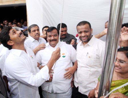 Hyderabad, Aug.15: YSR Congress Party chief and Opposition Leader in AP Assembly YS Jagan Mohan Reddy hoisted the national flag at the party headquarters at Lotus Pond on the 70th Independence Day on Monday. While greeting the people of both the Telugu States, YS Jagan said, “We have a long way to go to take pride in our independence as the governments have failed to fulfill the ambitions and aspirations of the people.” Jagan paid tributes to freedom fighters. Speaking on the occasion, he said Chandrababu Naidu government was least bothered about the welfare of the people and development of the State and was deceiving people with all false promises. He said it is a matter of serious concern that Dalits are being attacked even today and called for a united fight for social justice to the underprivileged sections of the society.