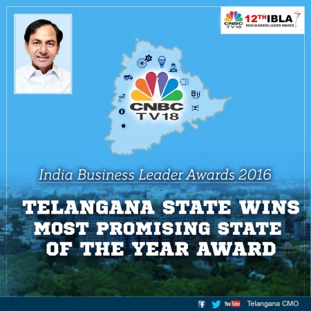 Hyderabad, Aug.28: Telangana State has been chosen for the ‘Promising State of the Year’ award by CNBC-TV18 as part of the India Business Leader Awards (IBLA) instituted by the channel.