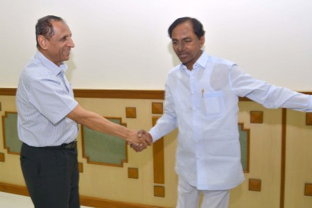 Hyderabad, Aug.30: Chief Minister K Chandrasekhar Rao today called on Governor ESL Narasimhan at Raj Bhavan here. The meeting assumes significance as a special session of Telangana Legislature unanimously approved the GST Bill passed by the Parliament.