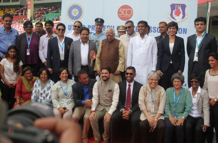 Uttar Pradesh Cricket Association president Rajeev Shukla felicitated former captains, including Ajit Wadekar, Kapil Dev, Sunil Gavaskar, Dilip Vengsarkar, Kris Srikkanth, Ravi Shastri, Mohammad Azharuddin, Sachin Tendulkar, Sourav Ganguly, Anil Kumble and Mahendra Singh Dhoni.