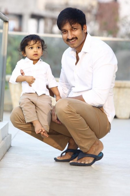 Hero Gopichand is right now working for 'Oxygen' movie and a film with Sampath Nandi. The actor who rarely speaks out in public shared a pic of he along with his son. He shared the pic of his cute little son Virat sitting on his lap and said that Virat is celebrating his 2nd birthday today. He shared "2nd birthday to my cute little one" Gopichand married Reshma, niece of Srikanth in 2013 and blessed with this son named as Virat, who is celebrating his 2nd birthday today. Thus Gopichand was a proud father of his 2years old son now. On the film front, Gopichand's Soukyam which released last year failed to impress the audience. Hope his upcoming films Oxygen and movie under the direction of Sampath Nandini should give him good success. Right now, Sampath Nandini's film shoot is underway in Thailand.