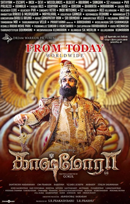 Tamil actor Karthi's Kaashmora hit the Theaters today. The film receiving positive response from early morning reports. The hero Karthi shared a new release poster via his twitter handle today.