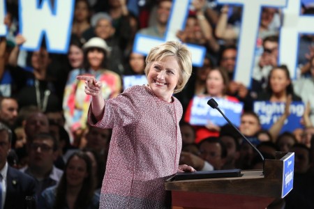 Supporters chanted "Hillary, Hillary, Hillary!" to overcome the male heckler. He was eventually escorted out of the rally.
