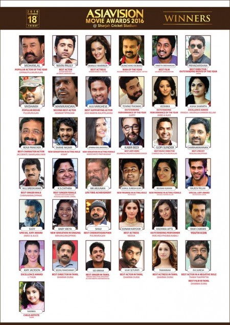 Especially Ram Charan's look and style in Dhruva is attracting the youth very much and he really deserves this Youth Icon Award. He is the only actor in Telugu to receive the Award in this ASIAVISION movie awards 2016. While Mohanlal is going to be awarded Popular Actor of the Year as his two films Oppam and Pulimurugan did superb business at box office.