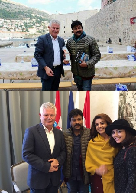 Megastar Chiranjeevi along with his team visited Slovenia and Croatia to picture two of their songs at Beautiful locations. It was known that the Mayor of Dubrovnik met Chiranjeevi and Kajal Agarwal during the song shoot of Khaidi No.150.