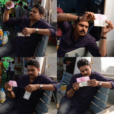 Coming to the pic, we can see Pawan Kalyan closely observing what's there in new Rs.500 and Rs.2000 notes. He did this in the sets of Katamarayudu. So the pics of him checking the new notes have gone viral in social media. Even though Pawan did it casually or intentionally, the pics have become a hot topic in social media now. Thus Pawan Kalyan grabbed media and audience attention again with these pics.