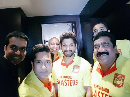 He tweeted "One of my Best selfies ! Legendary Sports men ! Great Honour being associated & Co-owners of the Team #BengaluruBlasters"