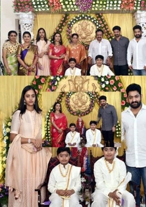 Young Tiger Jr.NTR along with his family visited Rajahmundry for the Panchekattu function of Janikiram sons recently. Jr.NTR pics during his visit did hulchul in social media and gone viral.