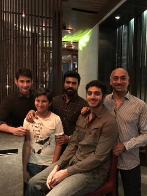 Coming to the pic, we can see Mahesh Babu, Ram Charan, Goutham, Galla Jayadev and his son Siddartha Galla. The both fans of Mahesh Babu and Ram Charan are stunned with the surprise from the superstar. Generally, often fans do fight with each other supporting their hero's but this pic itself reveals that stars won't have any egos between each other, So at least seeing this kind of pics fans should stop unnecessary fights.
